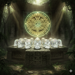 Nach einer Maya Prophezeiung sollten sich 13 Kristallschädel am 21.Dezember 2012 an einem heiligen Ort in Mexiko versammeln, wo sie ihr Wissen freigesetzt haben. Und tatsächlich fanden sich exakt zu diesem Datum die 13 Kristallschädel zusammen. Diese speziellen Schädel enthalten das Wissen und die Weisheit d